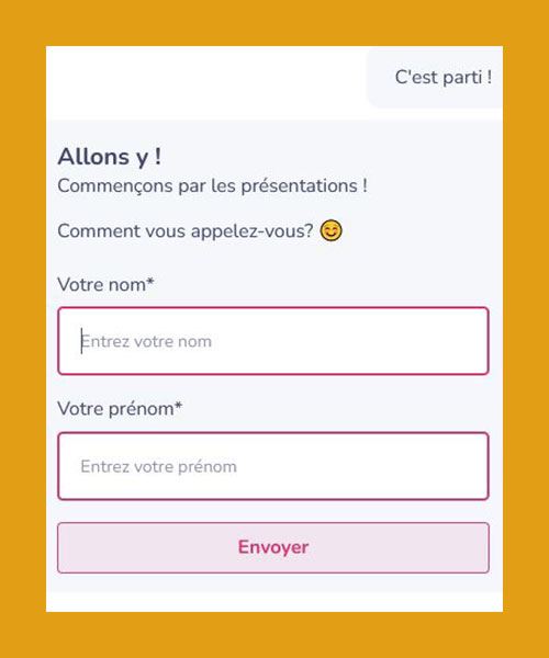 On commence par une première étape de présentation qui nous permettra de personnaliser la conversation et la rendre plus réelle