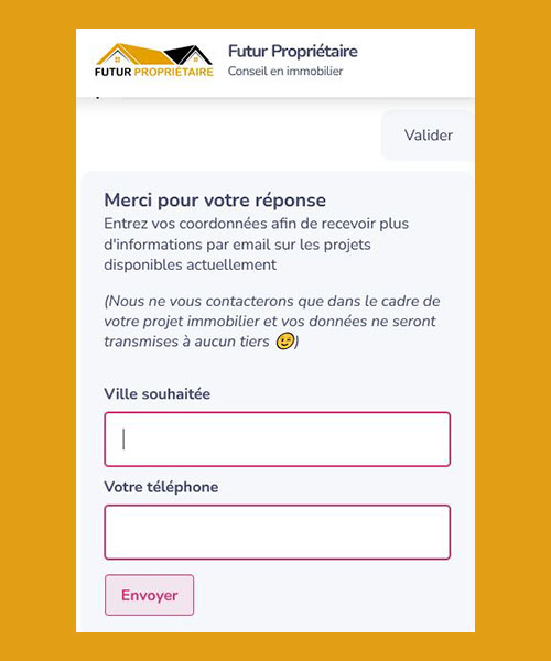 on laisse un moyen de contact au prospect et on va pouvoir envoyer le lead catégorisé comme vous le souhaitez : Mail, CRM, Webhook, etc…